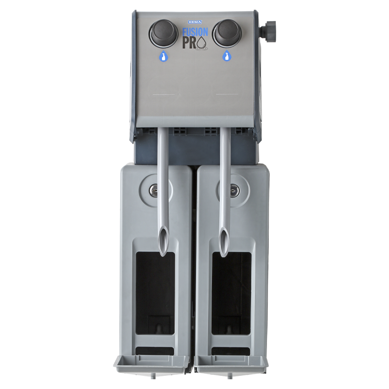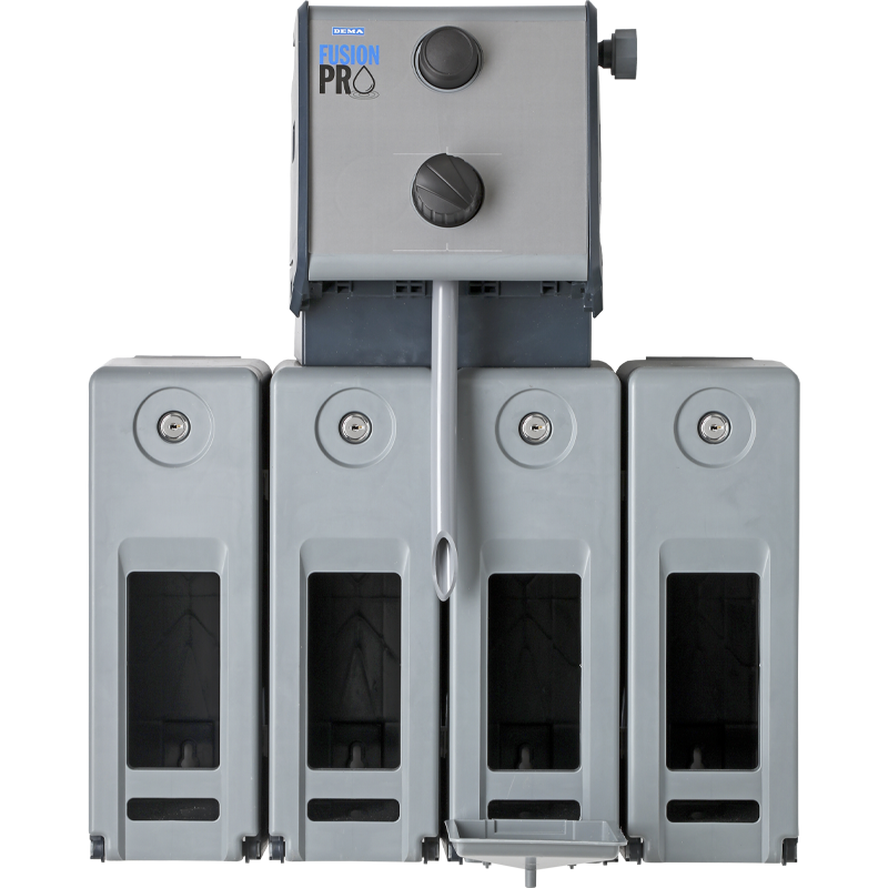 Fusion Pro is the next generation housekeeping chemical dispensing system, and the evolutionary step in DEMA’s innovative housekeeping technology platform, Fusion single product chemical dispenser. Fusion Pro’s modern and clean design makes it ideal for a variety of applications and installations. It uses DEMA’s pilot activated water valve, a unique design built to operate like a traditional valve but with minimal service requirements. Configurations available for any application, and any requirement. Choose from multiple product configurations for bottles anywhere between 2L and 5L in size.