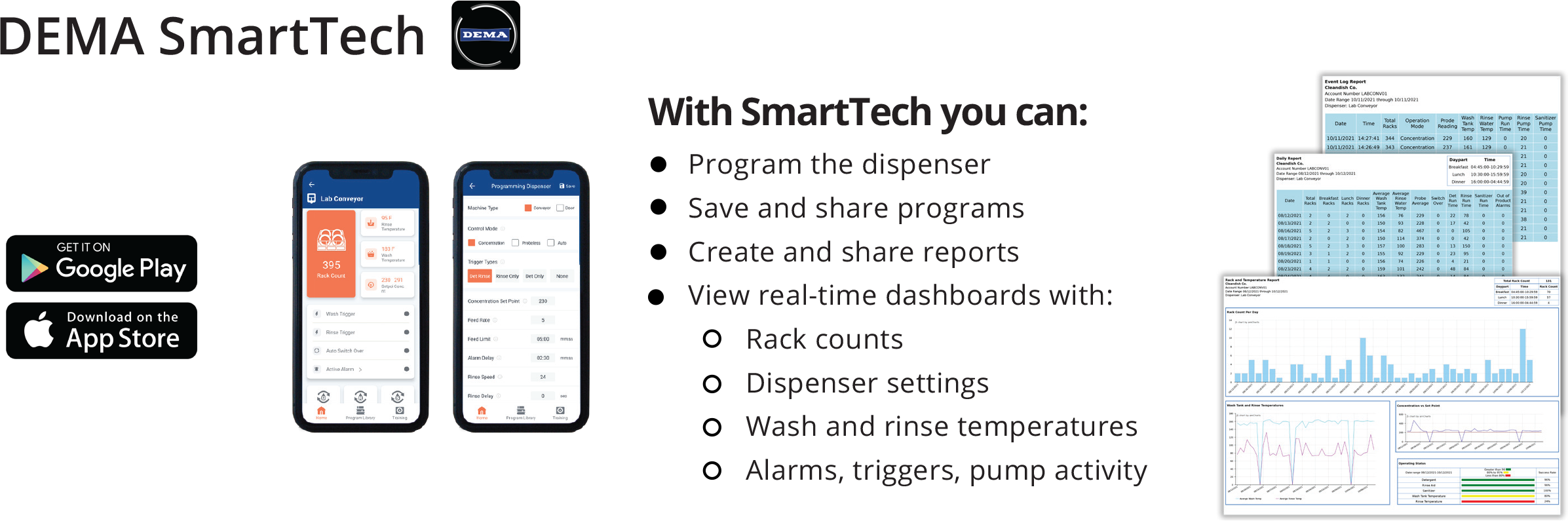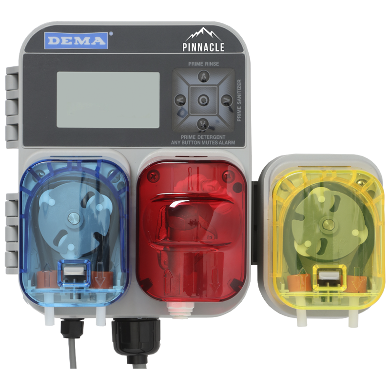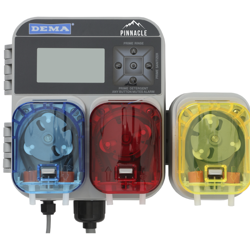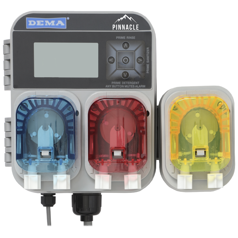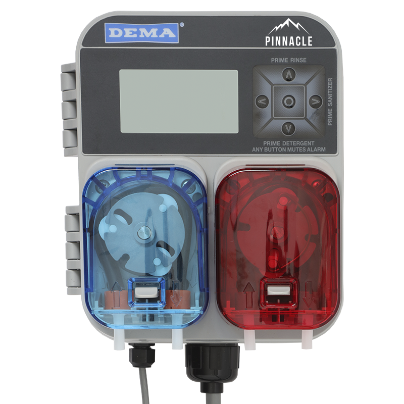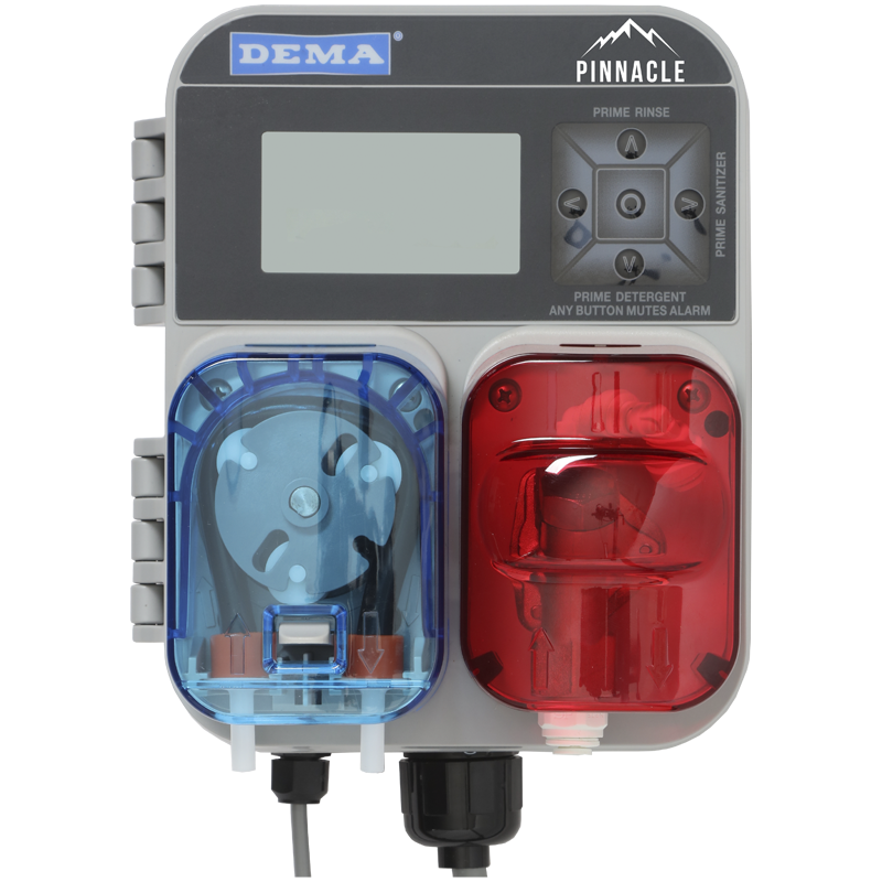 Introducing Pinnacle, the newest family of warewash dispensers from DEMA. The Pinnacle series has the most technologically advanced warewash dispensers available. With the DEMA SmartTech app, Pinnacle is programmable through a Bluetooth connection. SmartTech offers other useful features such as a real time dashboard, program sharing, reporting, and more. Pinnacle’s optional onboard programming is intuitive with a large display and easy-to-navigate menus. Pinnacle is the ideal choice for any warewash installation with its compact design and modern appearance.