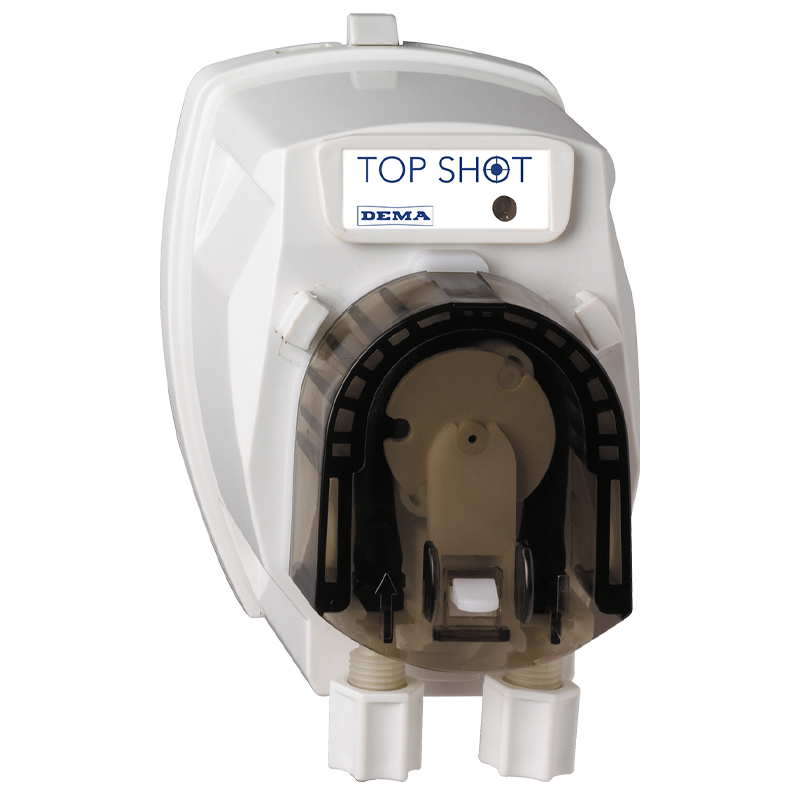 Top Shot Single Product Laundry Dispenser is a low-cost option for home-style laundry machines and perfect for self-serve, low volume, or special one product applications. Top Shot is designed using the proven Olympian platform and is ideal for home-style up to 75 lb. (45 kg.) commercial machines and available with EPDM or Silicone Squeeze tubes. Top Shot has an easy to use remote start button that makes it ideal for self -serve applications.